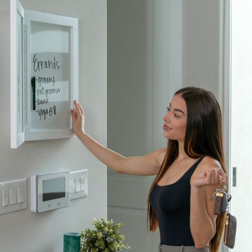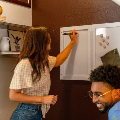 Keep your space organized with magnetic storage inside the Secret Whiteboard. All the accessories included with every board are magnetic and tuck away inside. Hide papers or your favorite travel magnets.